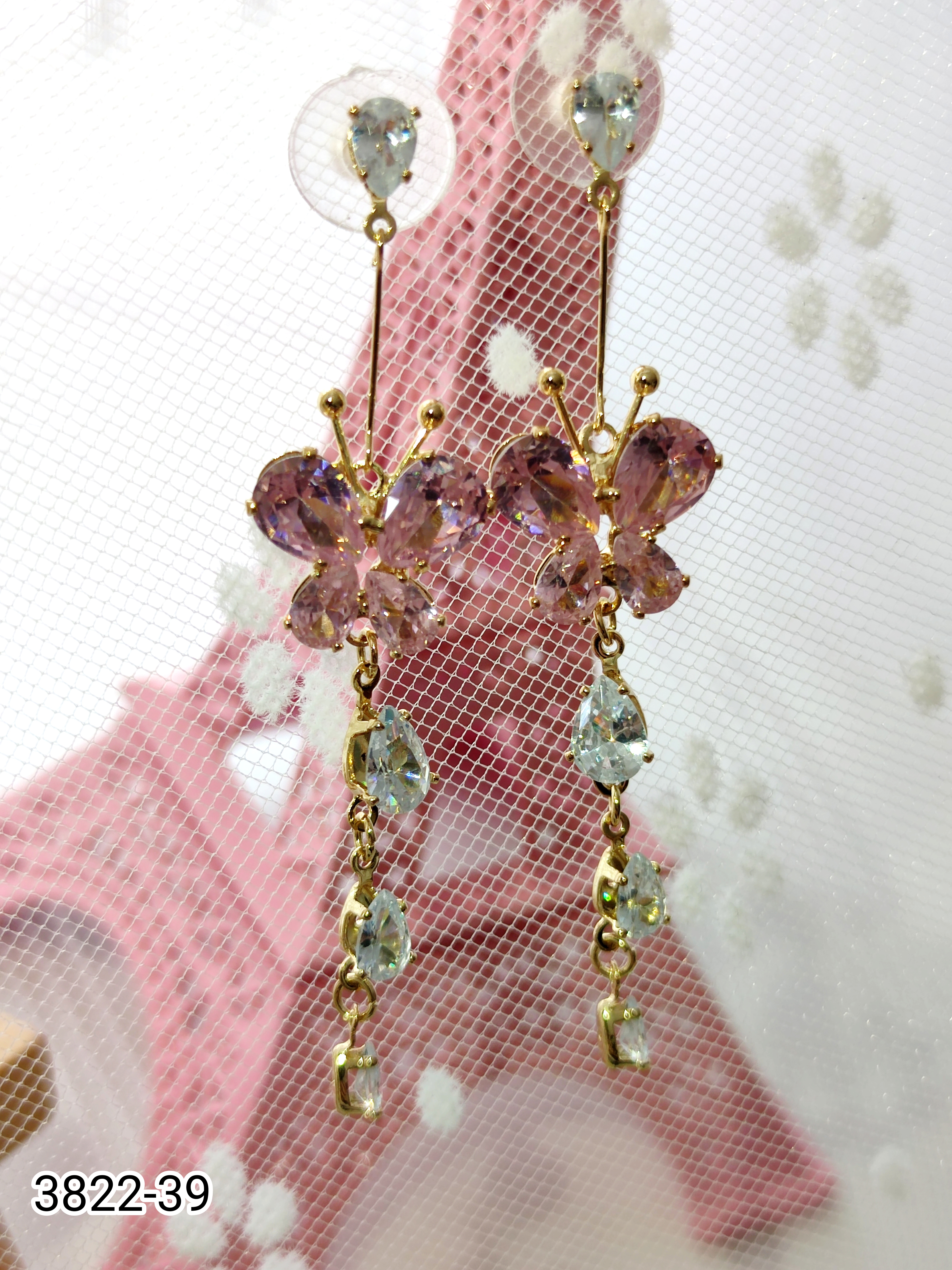 3822 高品质气质粉晶蝴蝶流苏耳环
