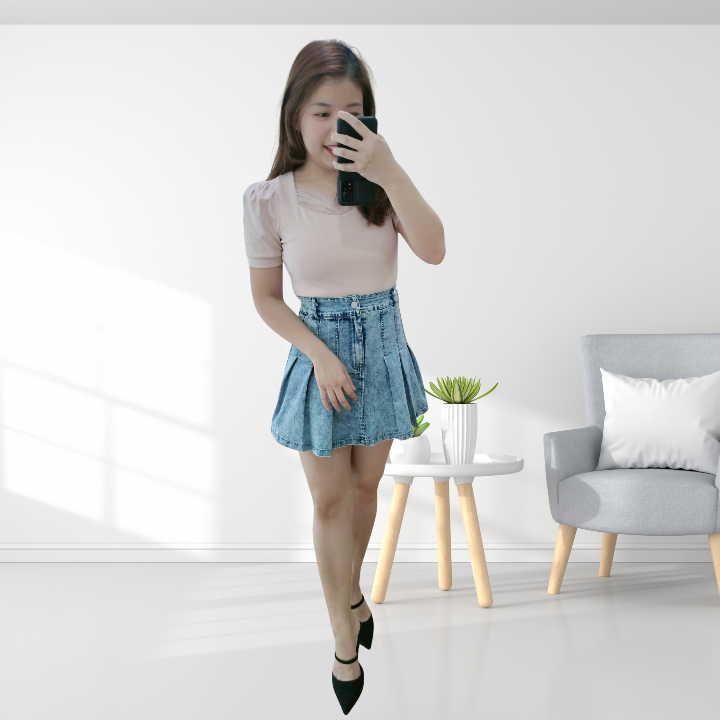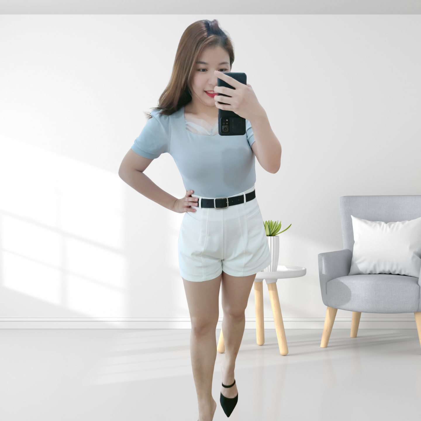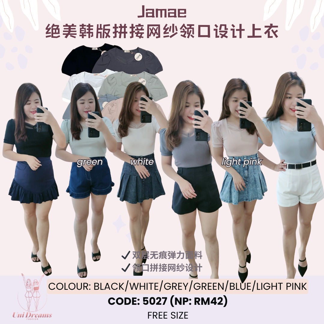 5027 Jamae 绝美韩版拼接网纱领口设计上衣