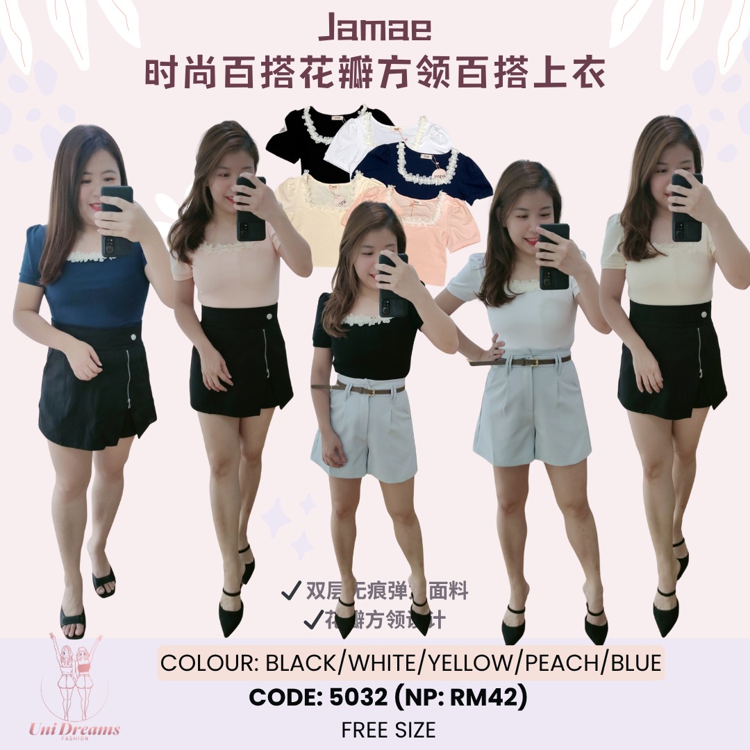 5032 Jamae时尚百搭花瓣方领百搭上衣