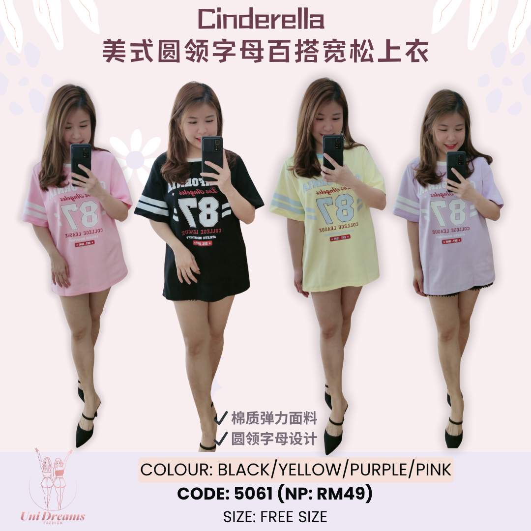 5061 Cinderella美式圆领字母百搭宽松上衣