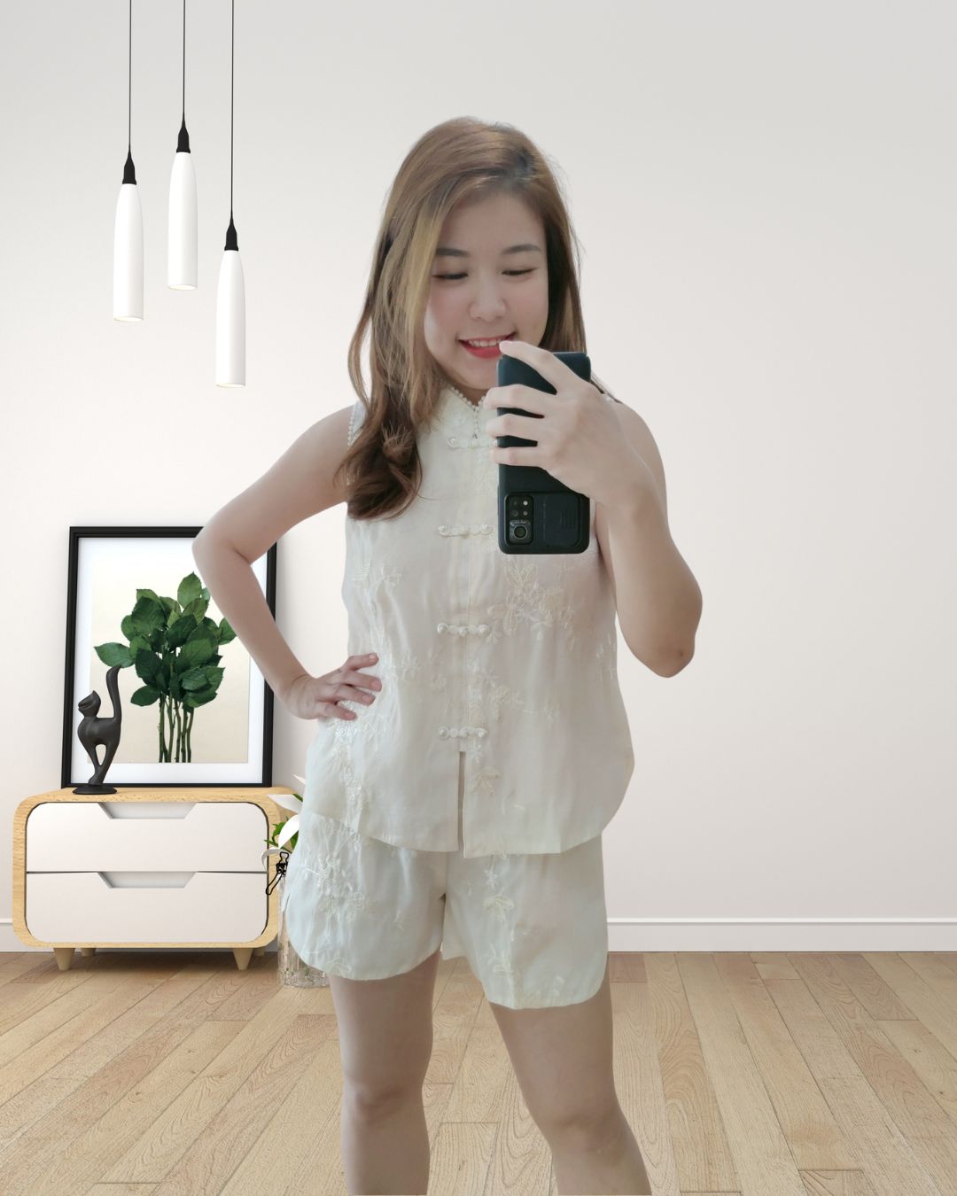 💖 Whitney 高质量甜甜ins风珍珠提花中式旗袍两件式套装 💖