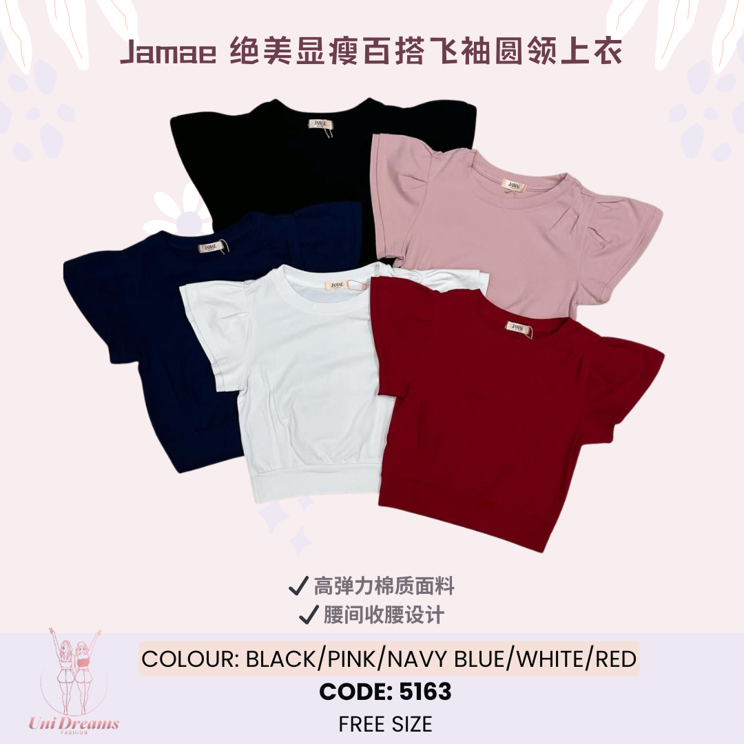 5163 Jamae 绝美显瘦百搭飞袖圆领上衣