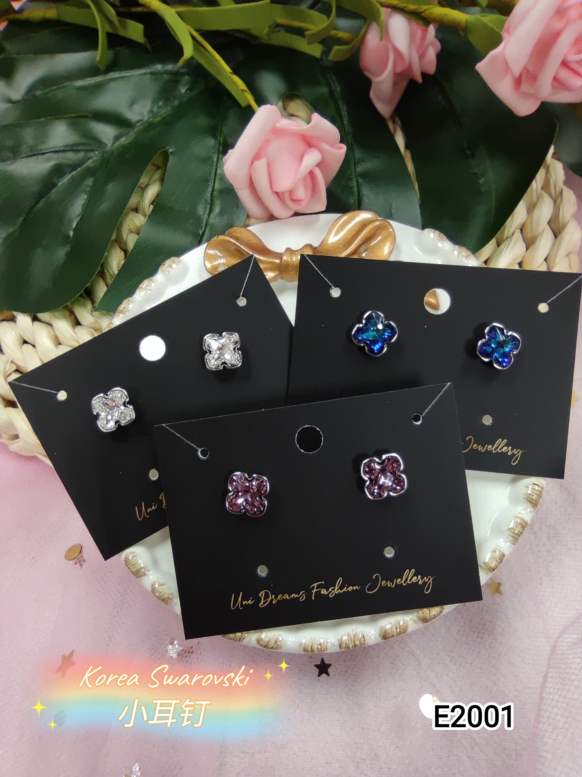 E2001 高品质韩国Swarovski 钻四叶草小耳环