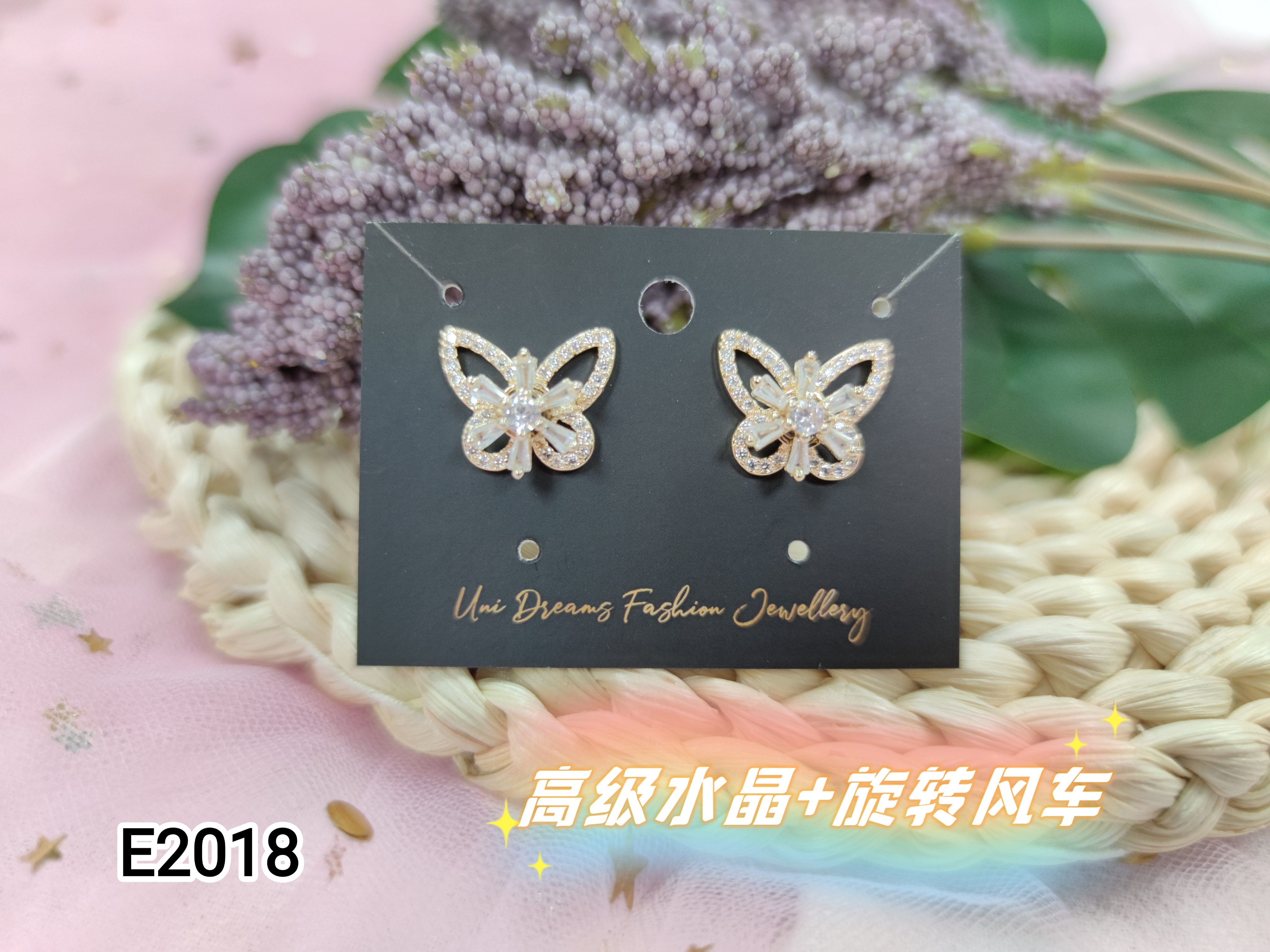 E2012 高品质水晶旋转风车蝴蝶设计小耳环