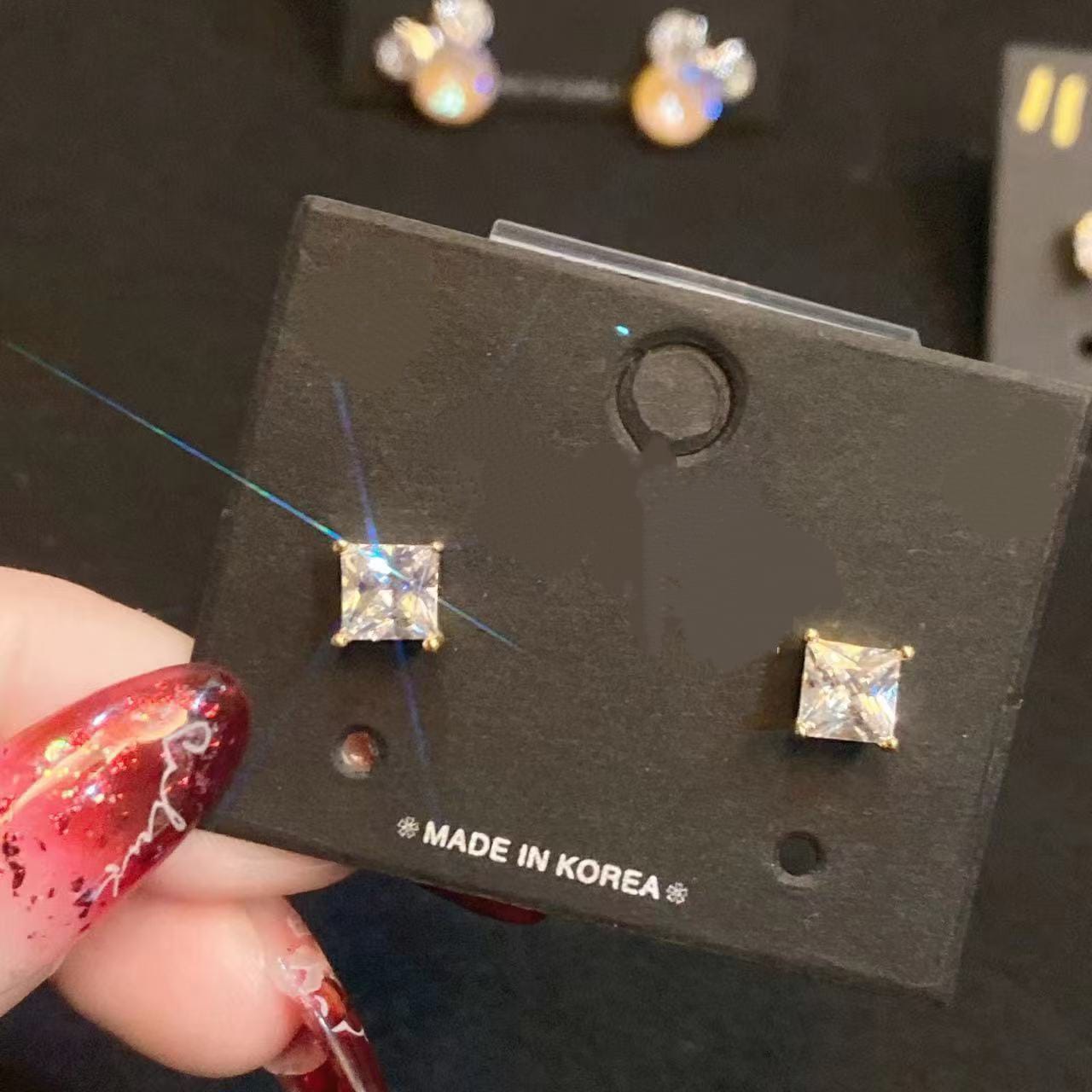 E2014 高品质韩国Swarovski 钻方形小耳环