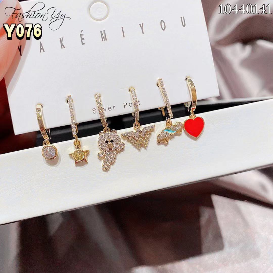 Y076 高品质混搭小吊坠满钻镶耳扣设计套装