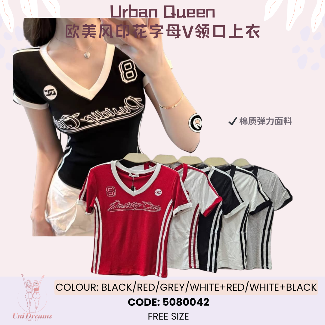 ✨❤️ 新品上架 | 爆款推荐 ❤️✨ 💖 Urban Queen 欧美风印花字母V领口上衣 韩系酷女孩必收!修身+俏皮印花,轻松穿出时尚活力感! 📌 CODE: 5080 💰 原价 RM45 ➡️ 福利价 RM39 🎨 颜色选择: Black / Red / Grey / White+Red / White+Black 📏 尺寸参考: Free Size ~ B80-92cm L47cm ✅ 弹力棉质面料,贴身舒适不紧绷 ✅ 撞色袖边设计,增添视觉层次感 ✅ 前面字母印花,简约不单调 📌 模特参考: 👩 妹妹 ➡️ 身高 156cm | 胸围 86cm | 腰围 68cm | 臀围 88cm 穿舒服 👩 姐姐 ➡️ 身高 155cm | 胸围 92cm | 腰围 76cm | 臀围 98cm 穿舒服